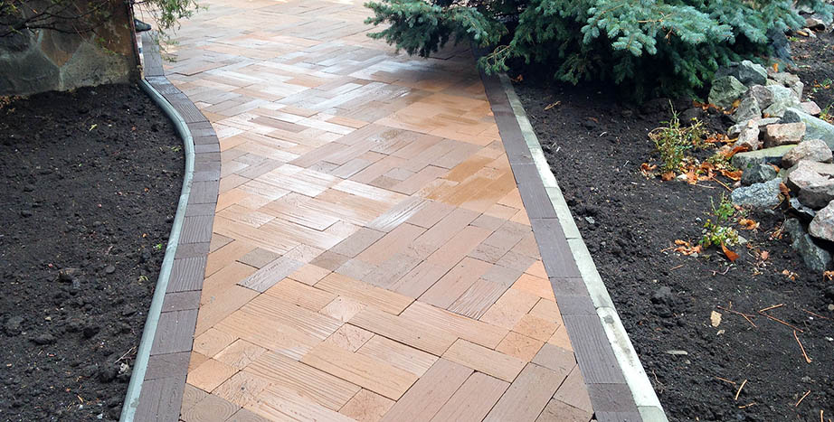 Применяется для мощения террас, аллеи и садовых дорожек, тротуаров, дворов, подъездных путей и стоянок для автомобилей, дорог с небольшой интенсивностью движения транспорта.