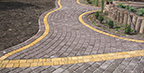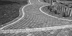 Применяется для мощения террас, аллеи и садовых дорожек, тротуаров, дворов, подъездных путей и стоянок для автомобилей, дорог с небольшой интенсивностью движения транспорта.